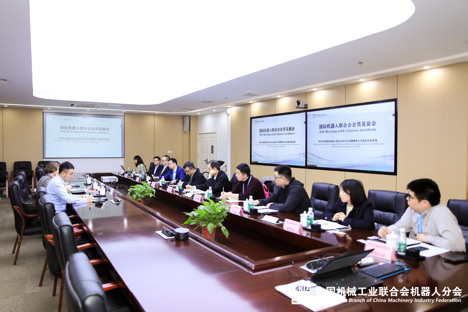 12月5日,2023中國機器人產業發展大會期間,國際機器人聯合會(IFR)協同中國機械工業聯合會機器人分會在埃夫特智能裝備股份有限公司蕪湖總部召開IFR中國區會員見面會。IFR 秘書長 Dr. Susanne Bieller,中國機械工業聯合會機器人分會國際部處長詹望,中國機械工業聯合會機器人分會國際部主管王麗麗和IFR中國區會員們一行到訪埃夫特,進行座談交流與訪問。